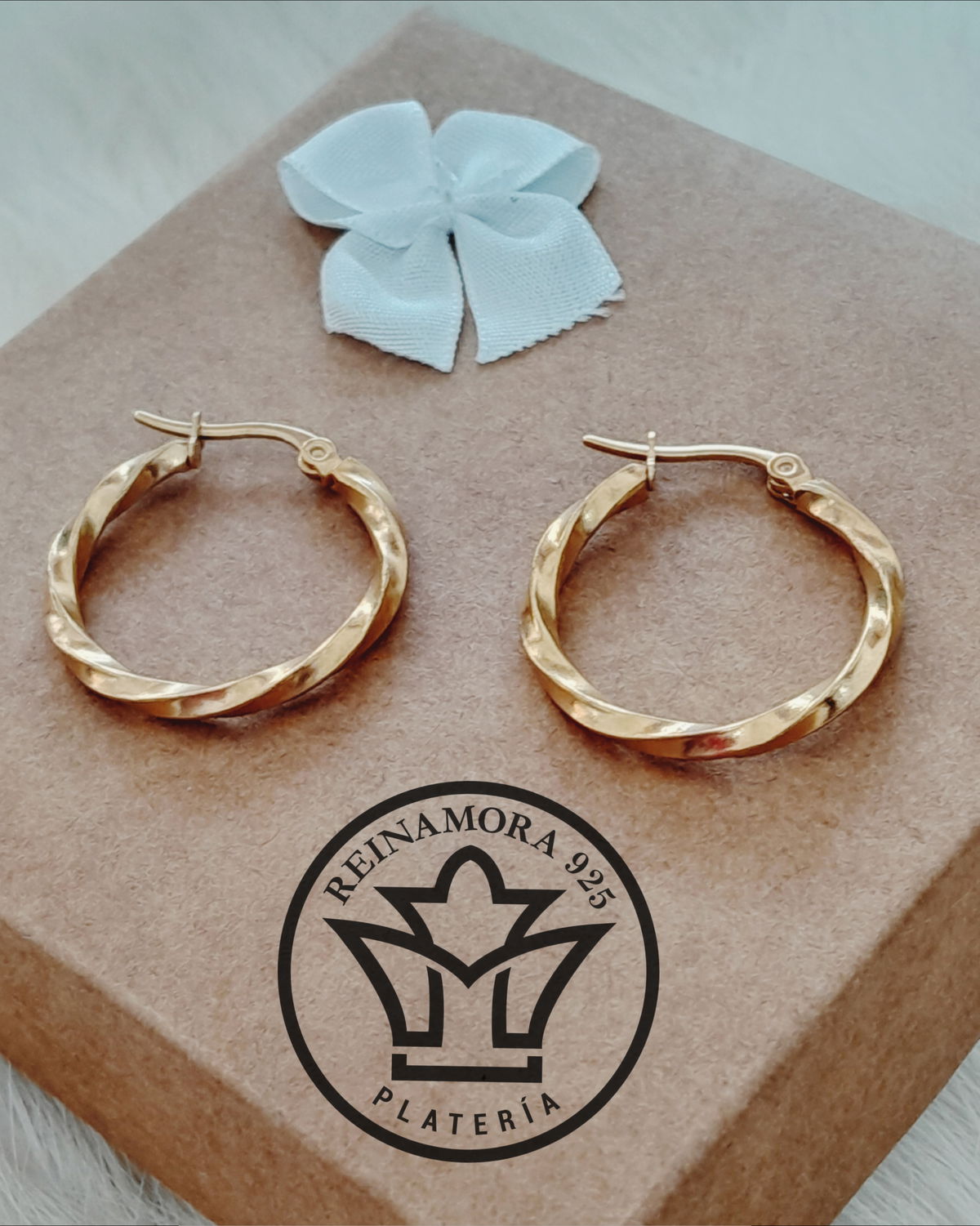 Aros Acero Quirúrgico Dorado Argolla Estriada 25mm