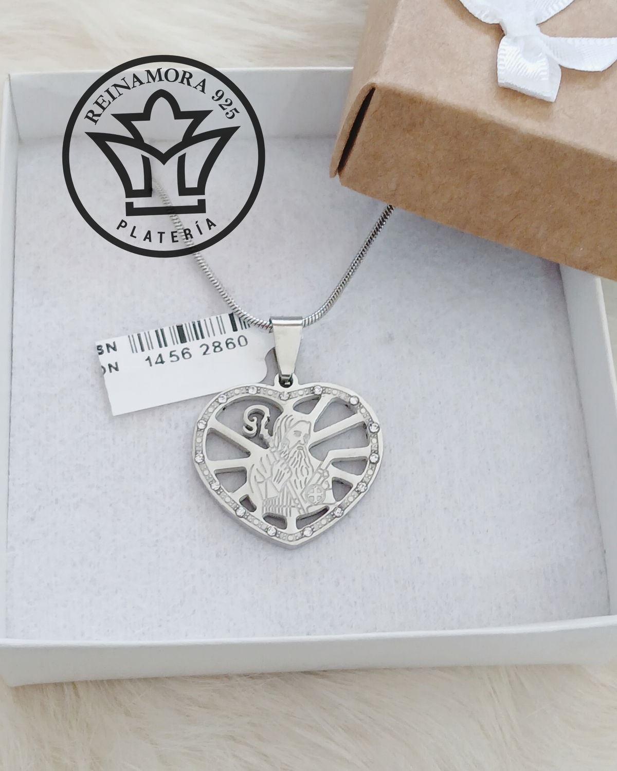 Dije Acero Quirúrgico San Benito Corazón Borde Strass 22x25mm