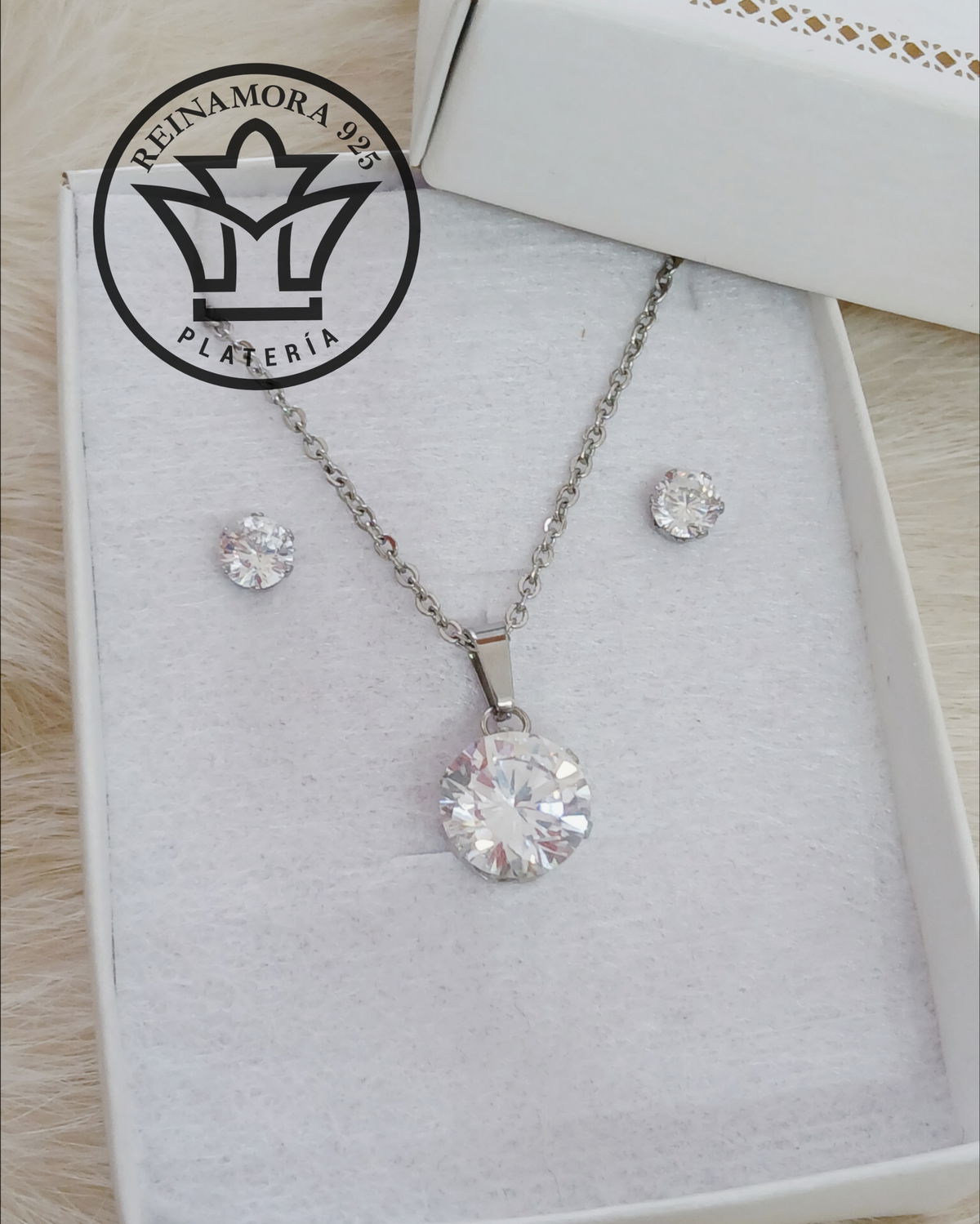 Conjunto Acero Quirúrgico Joyería Cubic Blanco