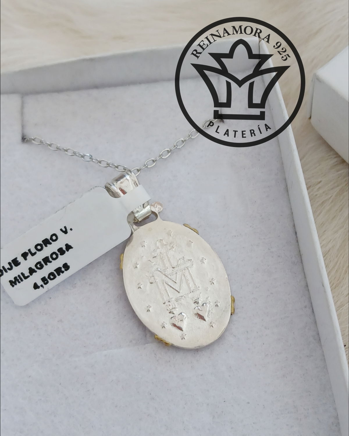 Dije Plata 925 Oro Virgen Milagrosa 4.5grs