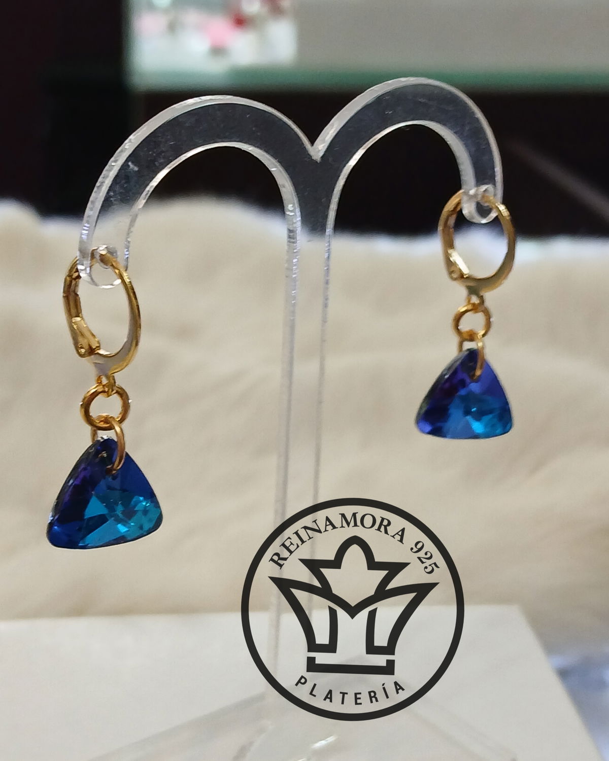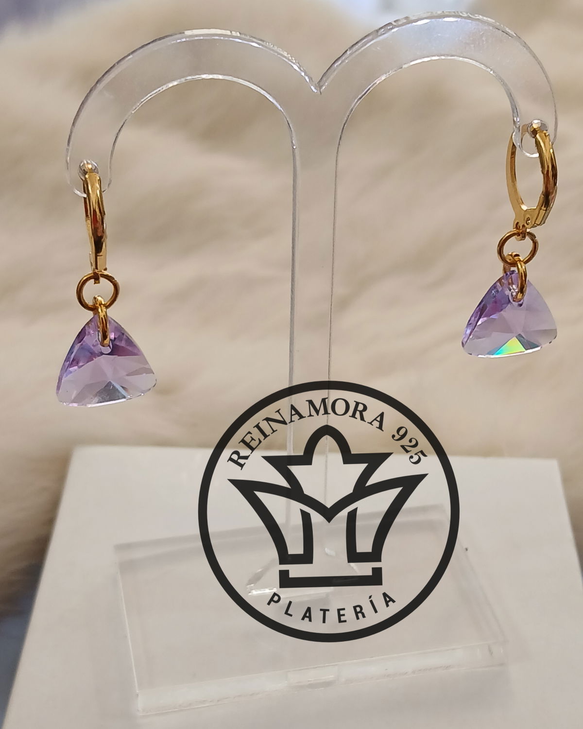 Aros Acero Quirúrgico Dorado Colgante Cierre Frances Triangulo Swarovski 13mm