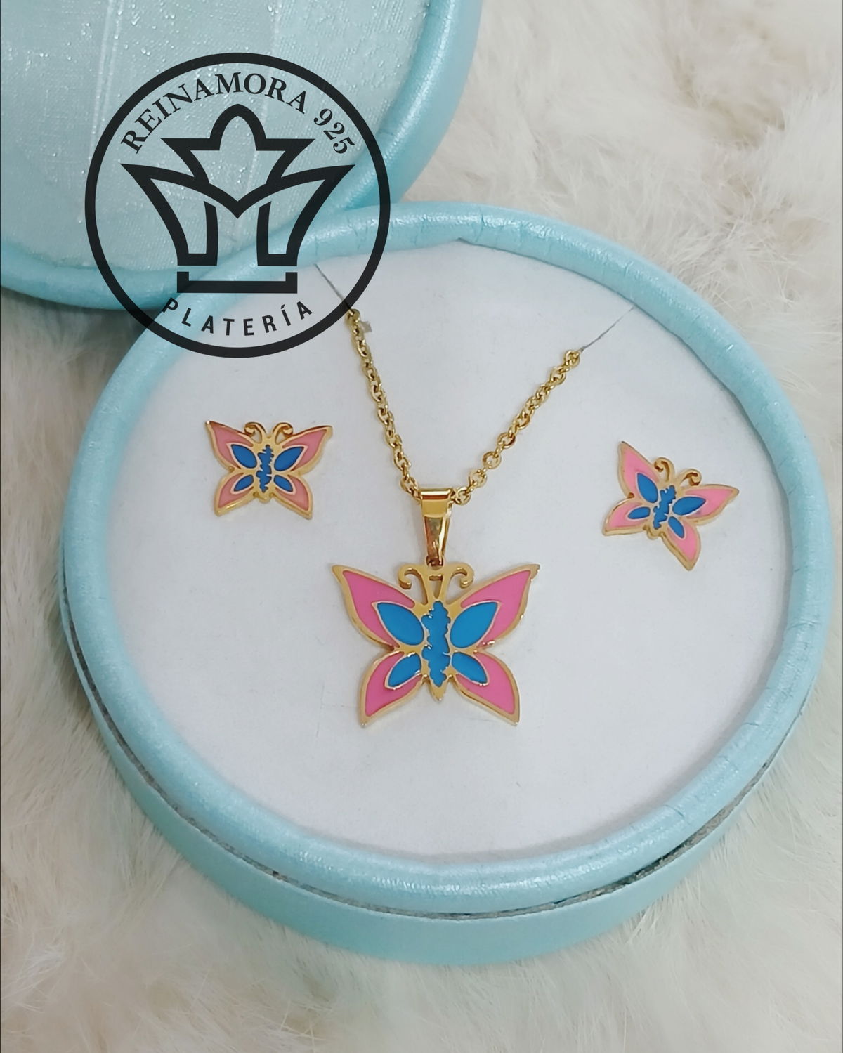 Conjunto Acero Quirúrgico Dorado Esmalte Mariposa