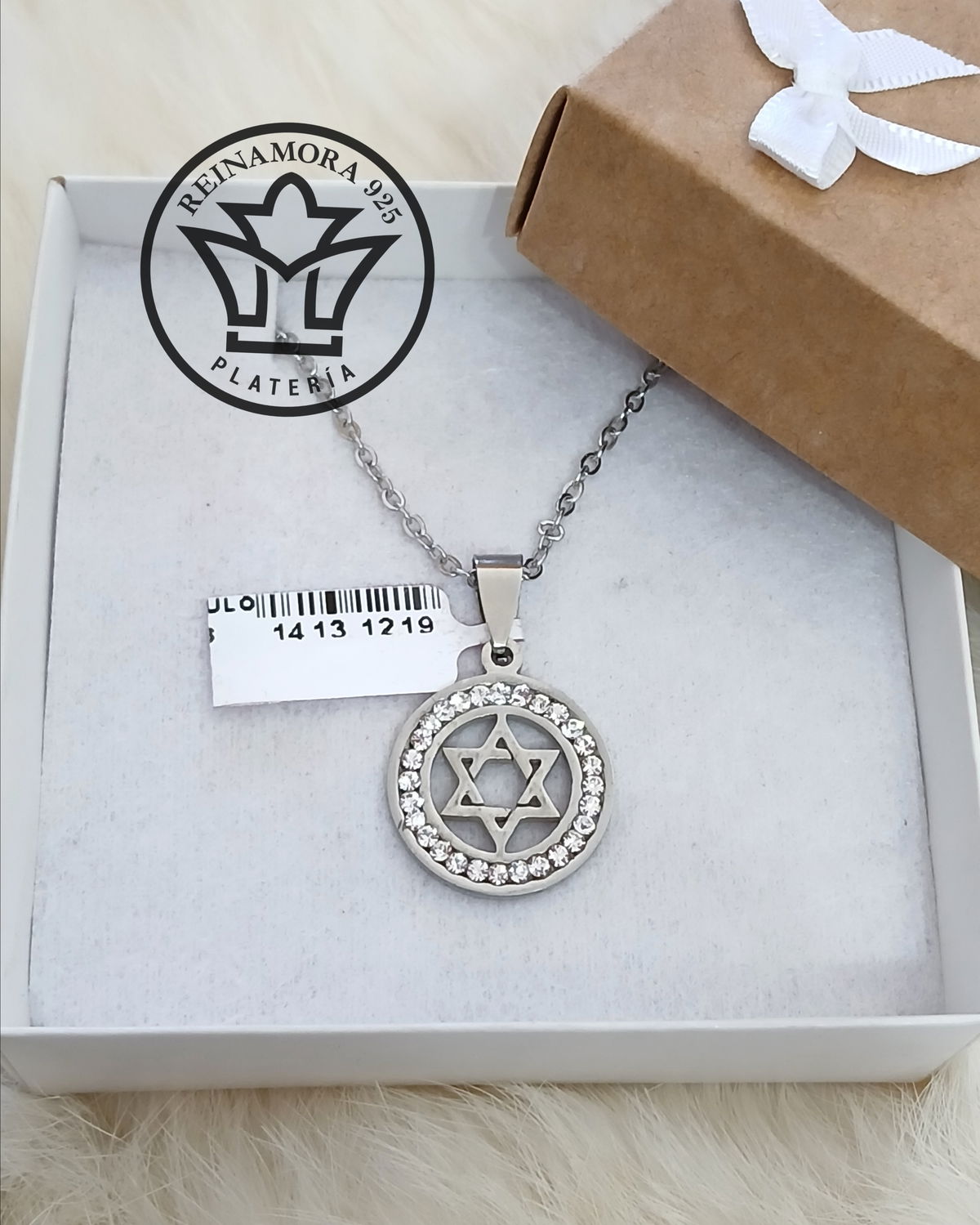 Dije Acero Quirúrgico Estrella De David Circular Borde Con Strass