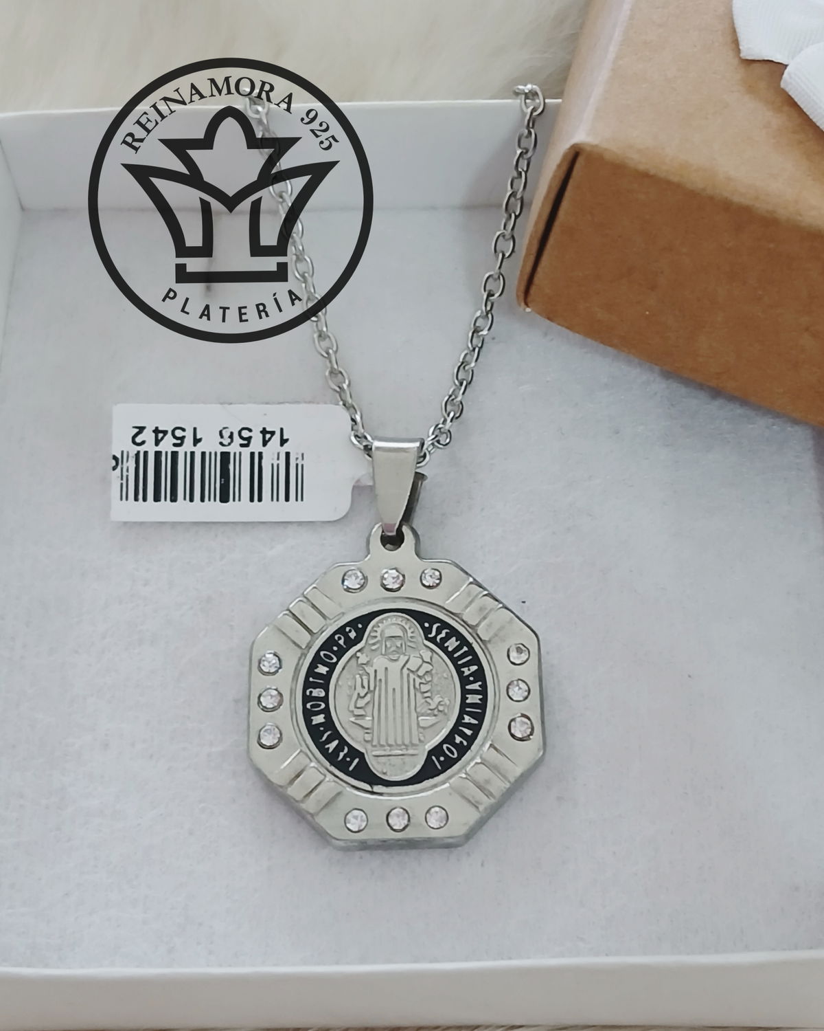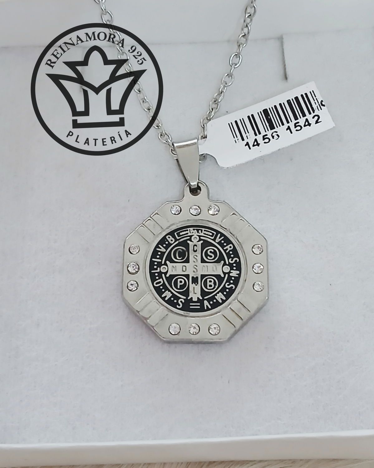 Dije Acero Quirúrgico San Benito Octogonal Strass