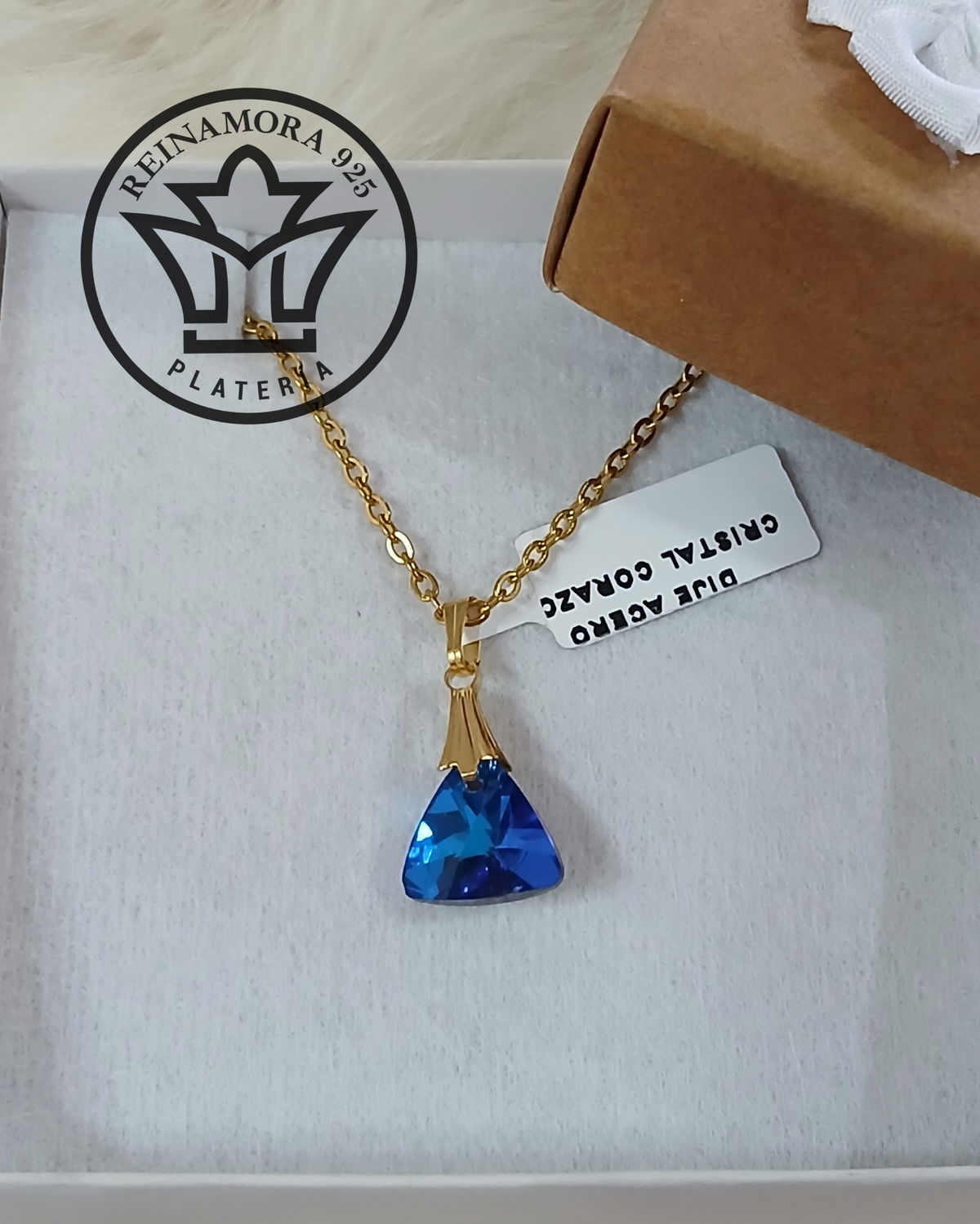 Dije Acero Quirúrgico Dorado Swarovski Triangulo 13mm