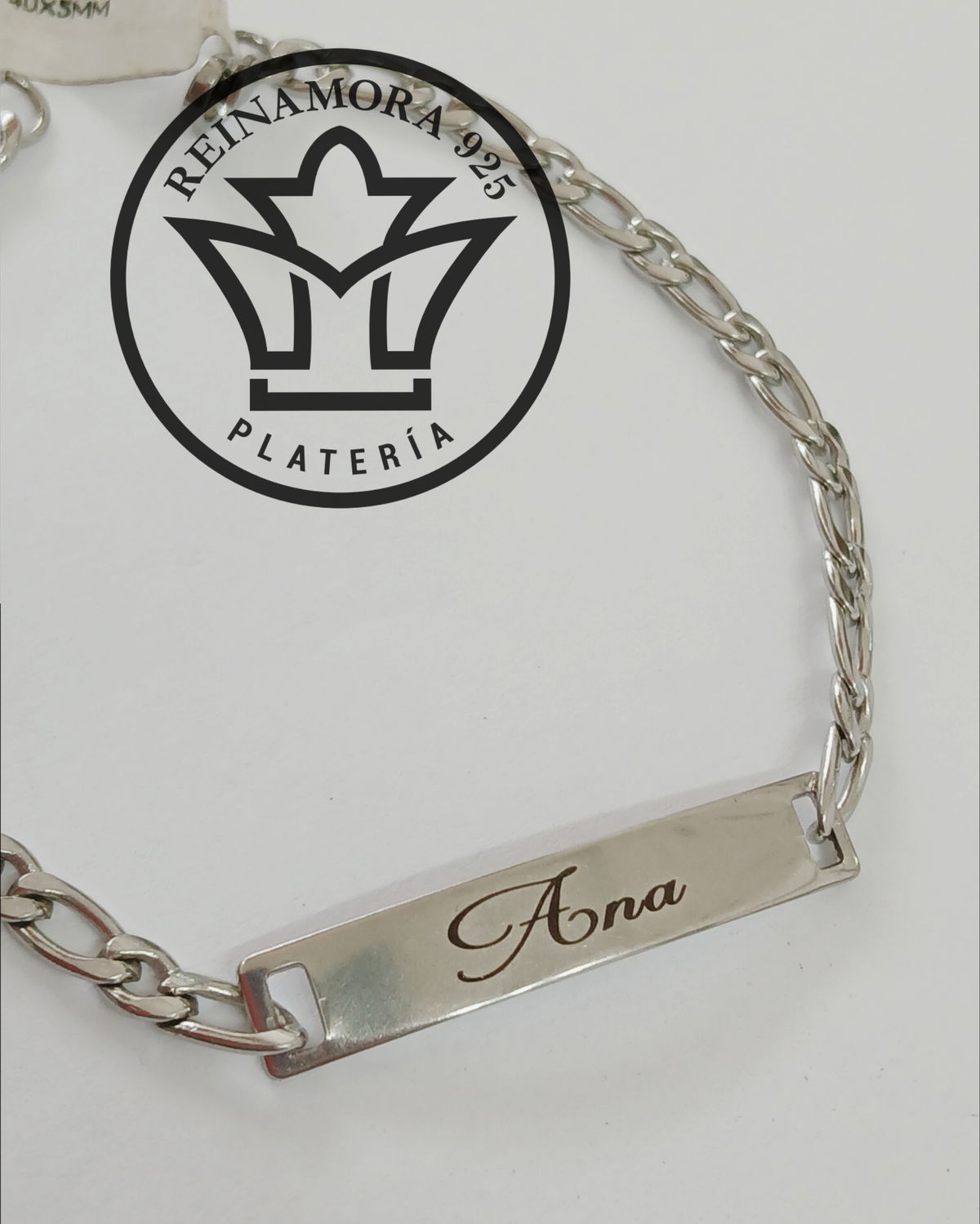 Pulsera Acero Quirúrgico Identificatoria Figaro 40X8mm + Grabado