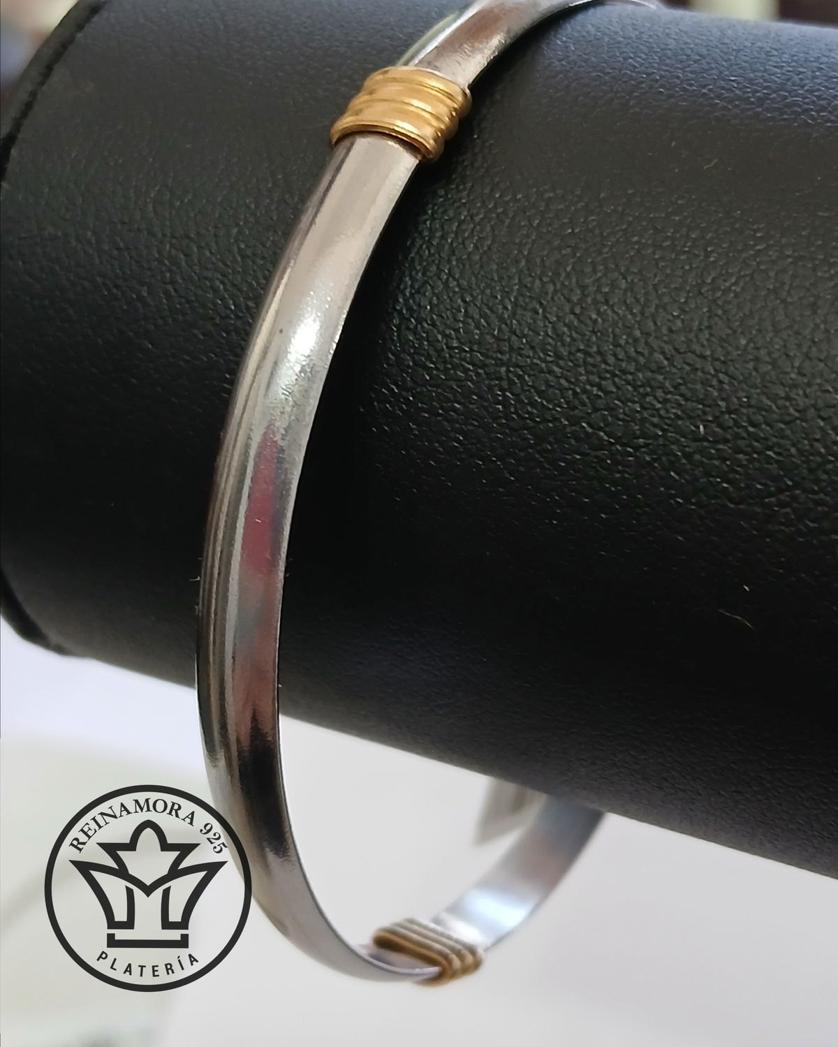 Esclava Acero Quirúrgico Con Aplique Dorado 6mm