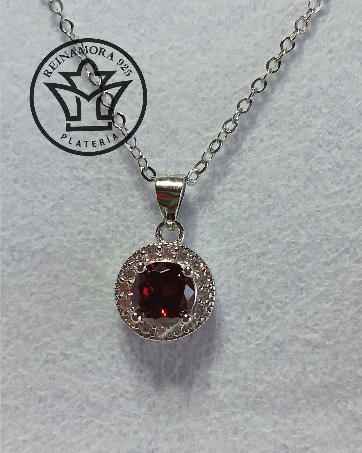 Dije Plata 925 Rodinado Oro Blanco Cubic Rojo Redondo 11mm 2.1grs