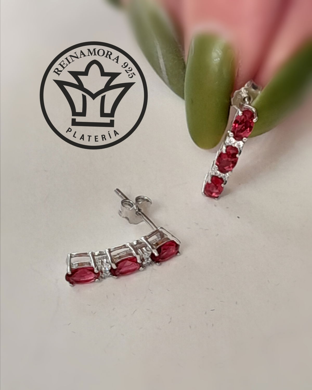 Aros Plata Pasante Cz Fucsia Ethel 1.7gr