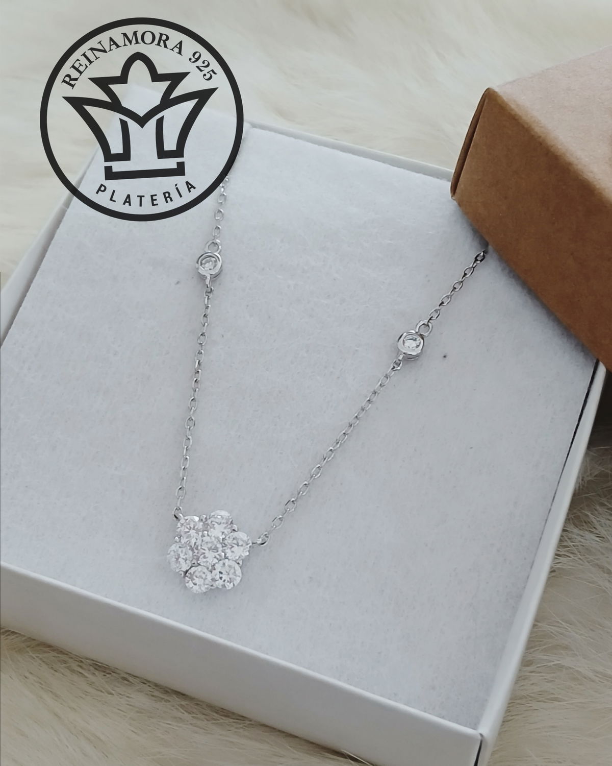 Gargantilla Plata 925 Rodinado Oro Blanco Cz Flor 3.3grs