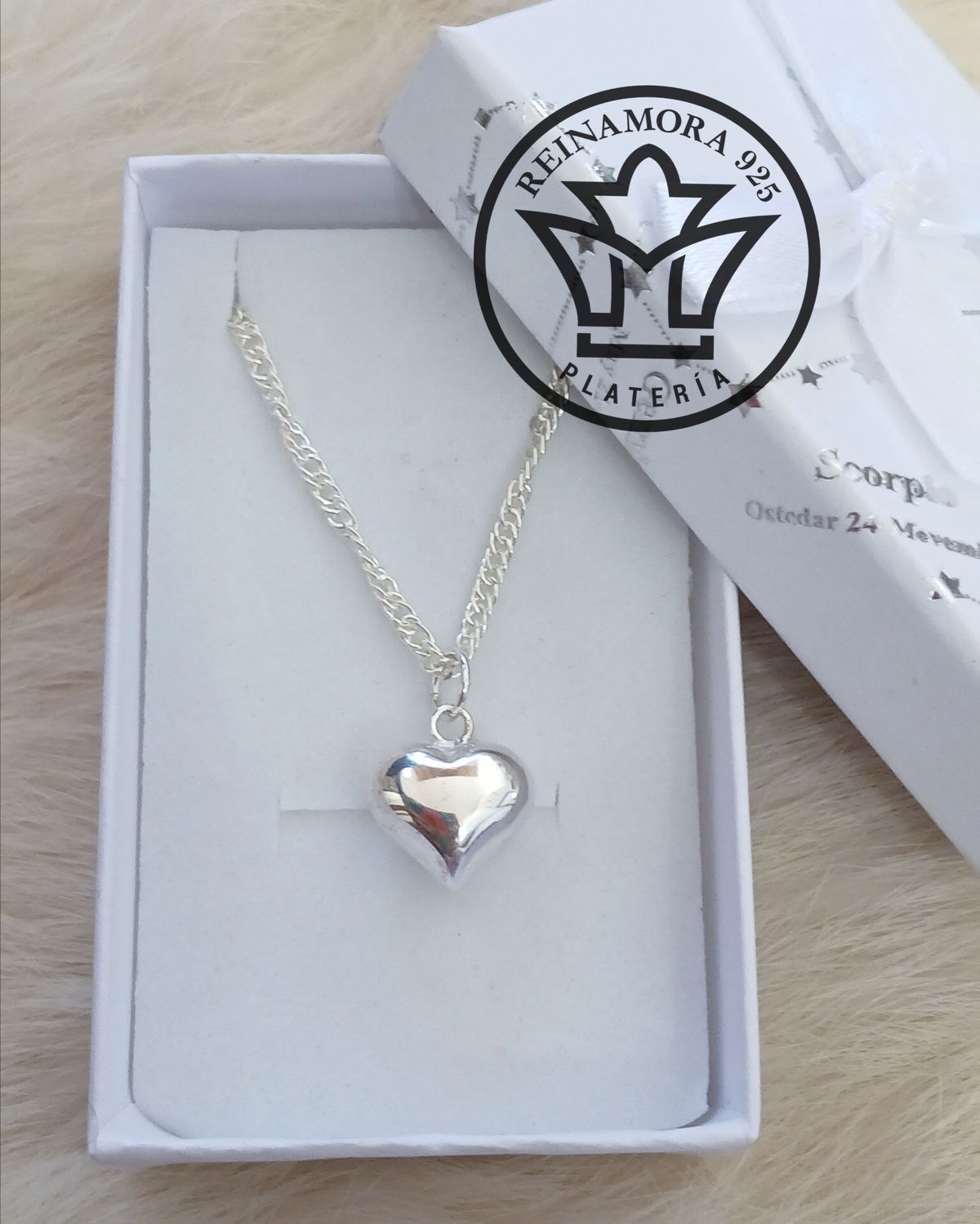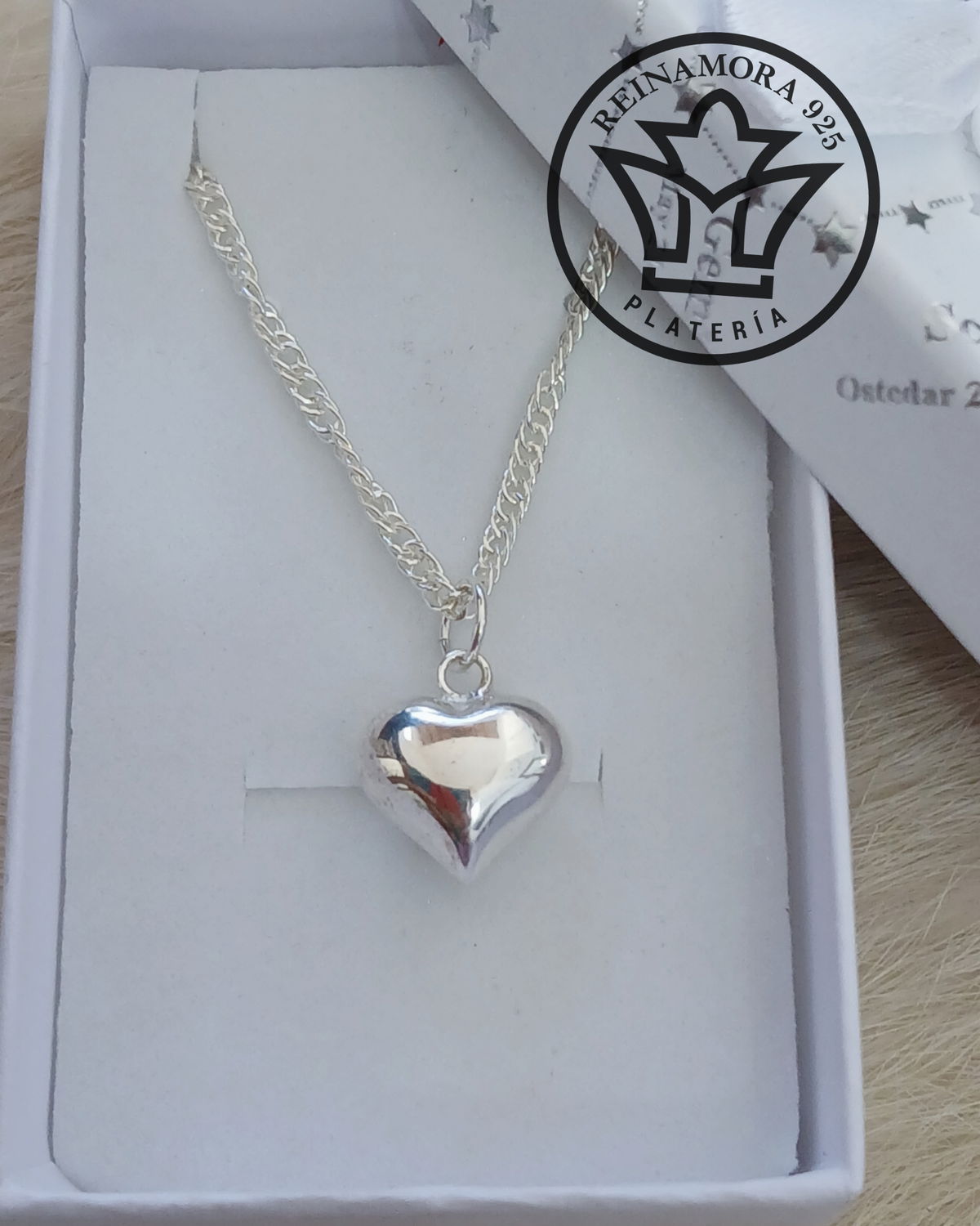 Juego Plata 925 Cadena + Dije Corazón Panzón 13mm