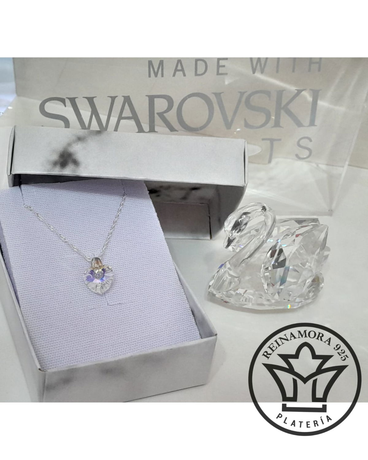 Juego Plata 925 Cadena + Dije Swarovski Corazon 10mm