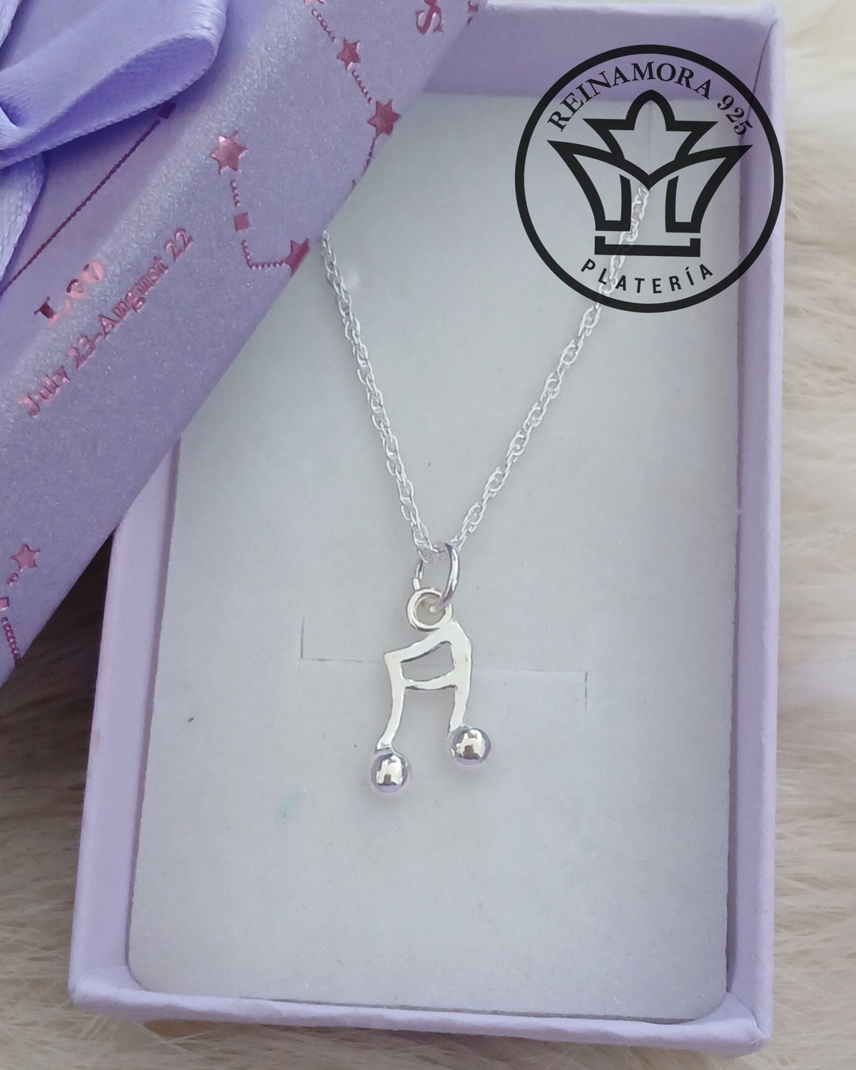 Juego Plata 925 Cadena + Dije Corchea 14mm