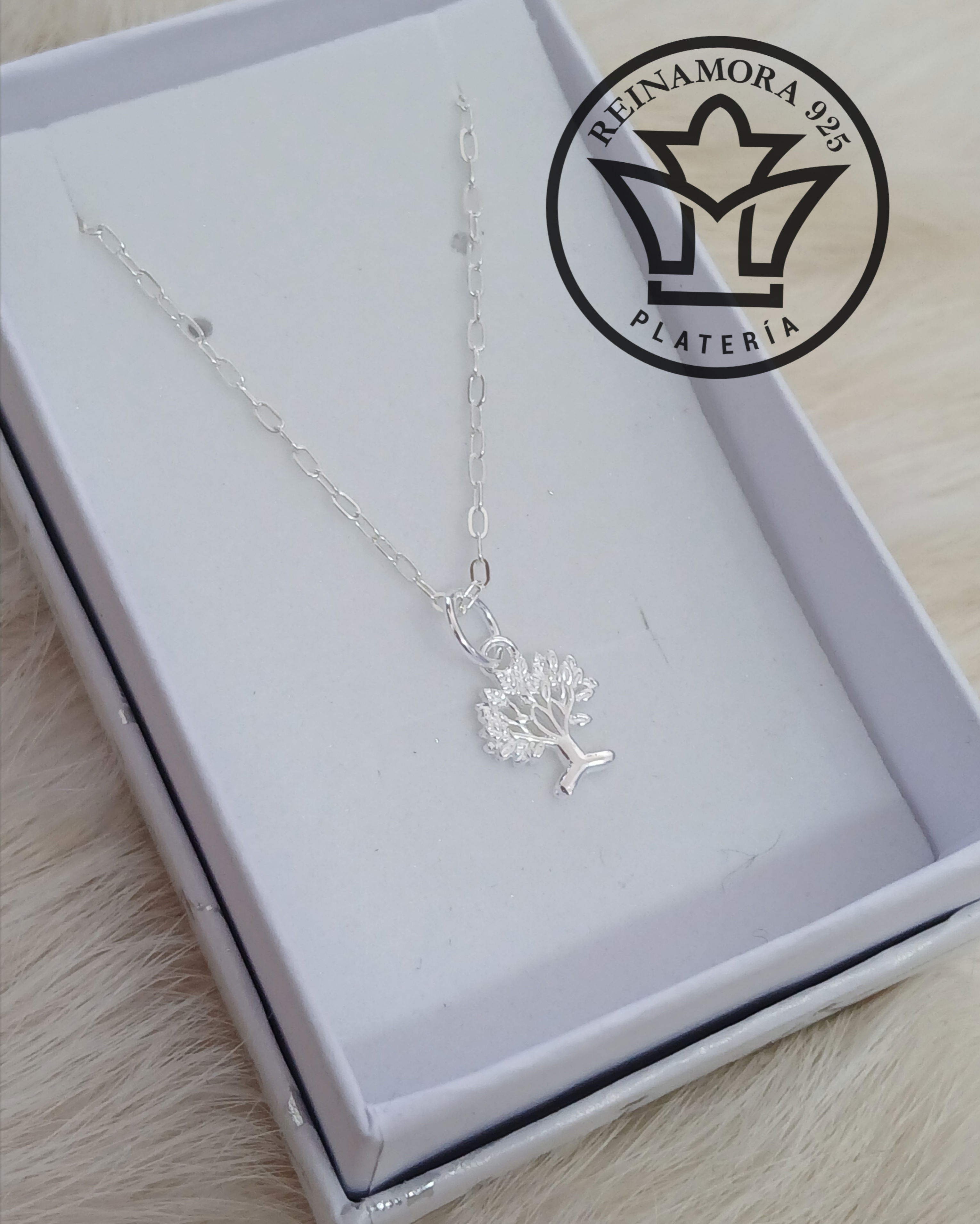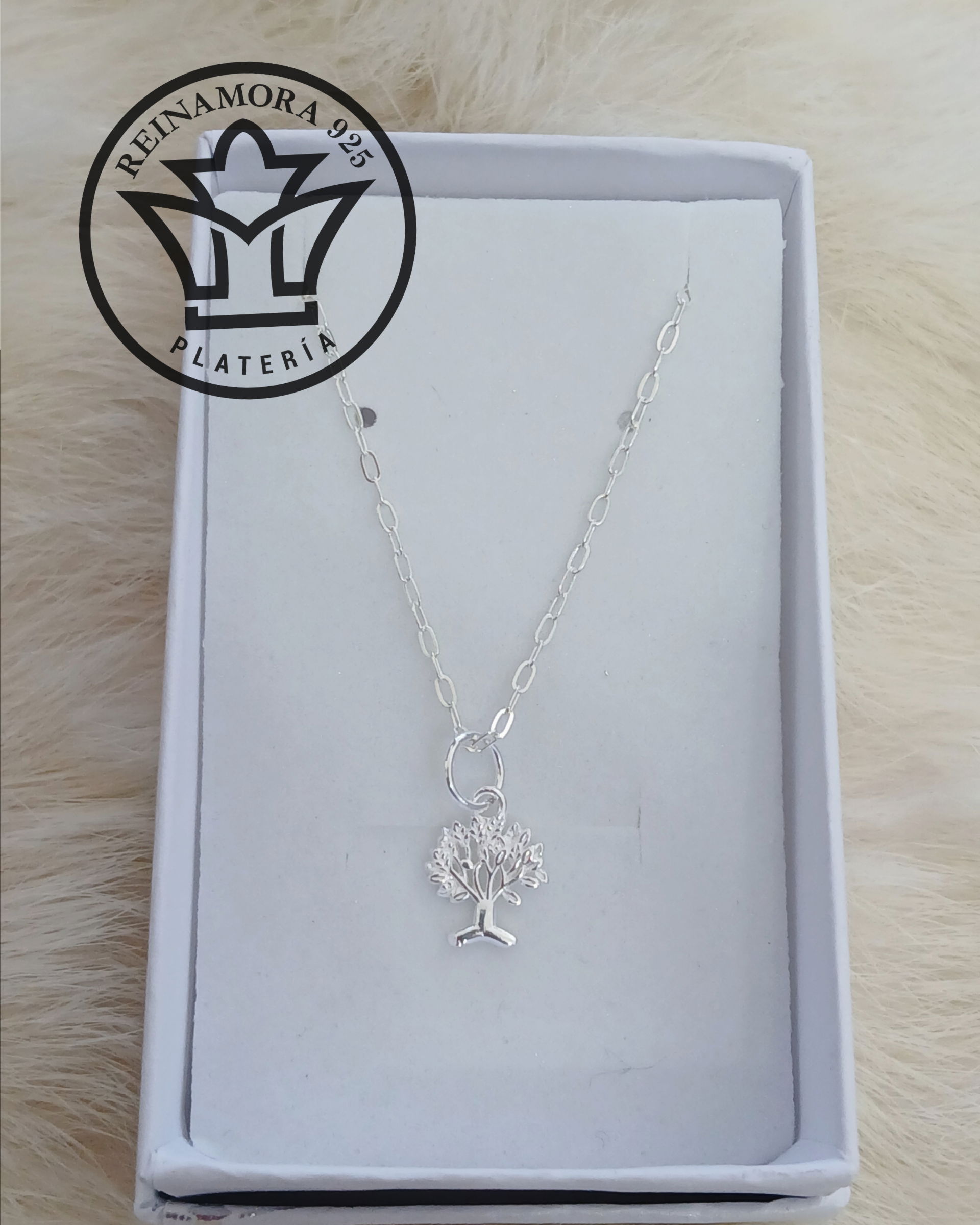 Juego Plata 925 Cadena + Dije Árbol 12mm