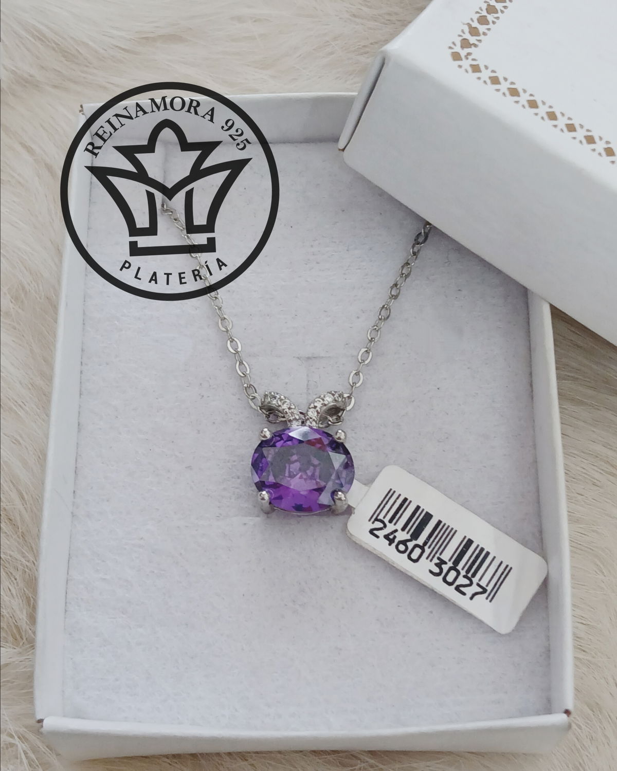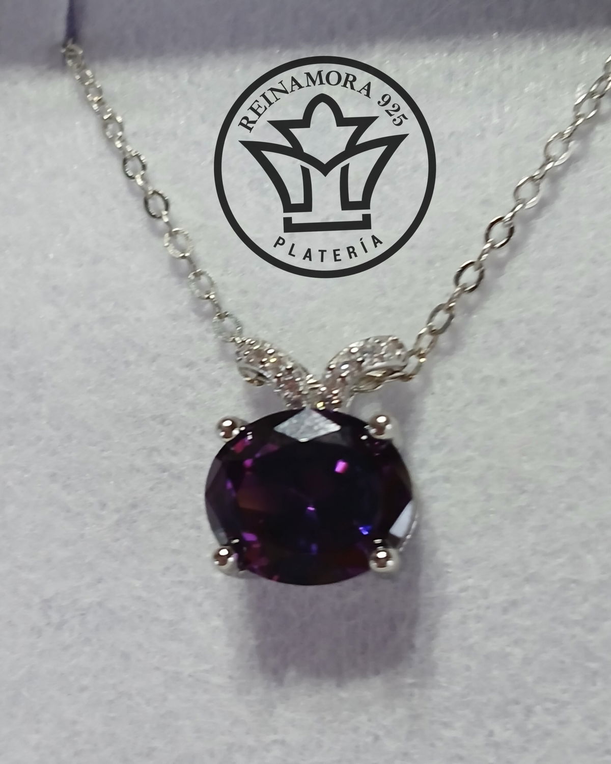 Dije Plata 925 Rodinado Oro Blanco Cz V Blanco Violeta 2.38grs