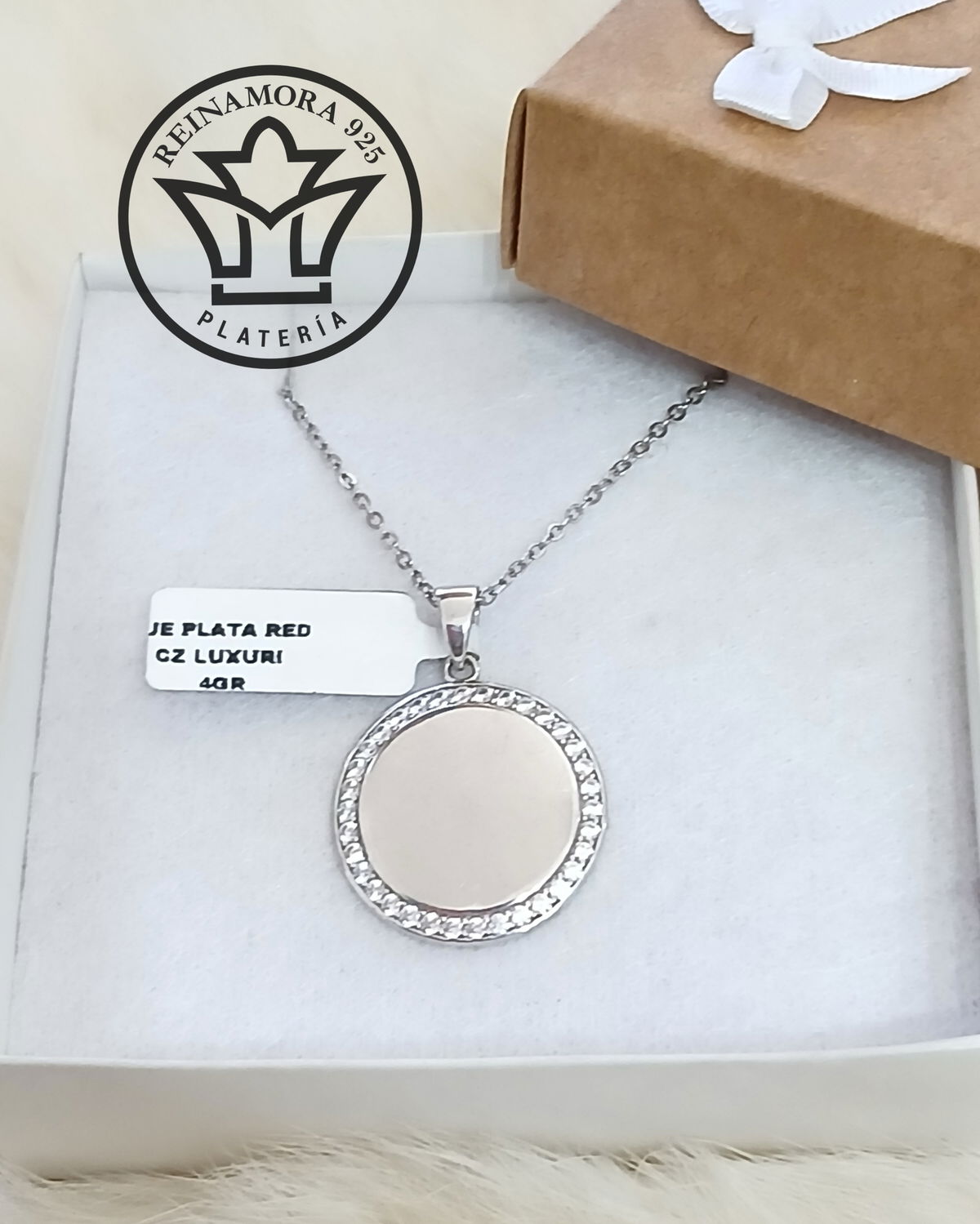 Dije Plata 925 Rodinado Oro Blanco Borde Cz 4grs