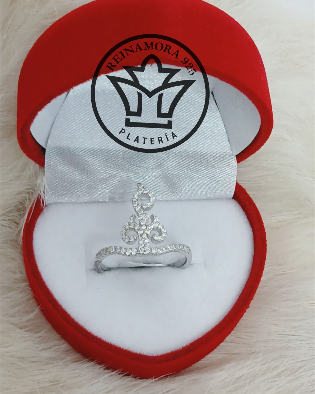 Anillo Plata 925 Rodinado Oro Blanco Corona Alta Cubic 2.6grs