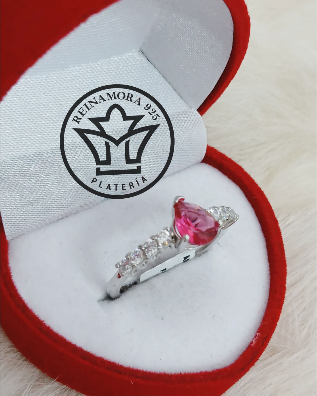 Anillo Plata 925 Rodinado Oro Blanco Cz Gota Fucsia 2.6grs