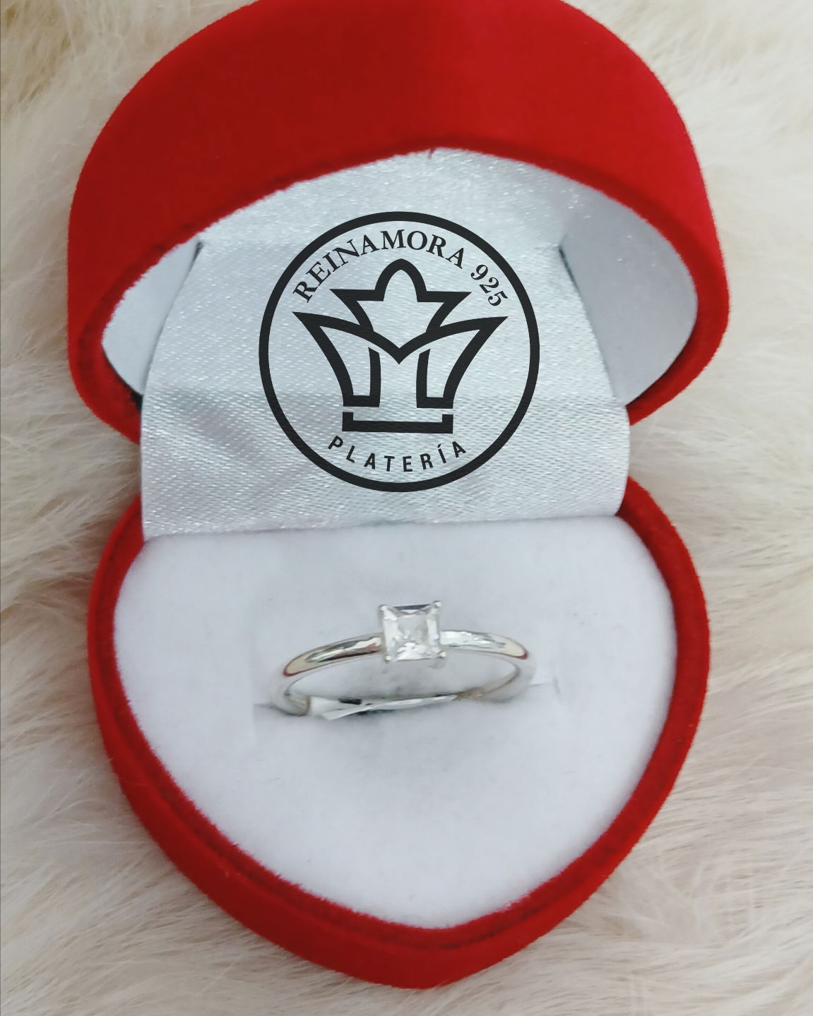 Anillo Plata 925 Cz Cuadrado Solitario 2grs