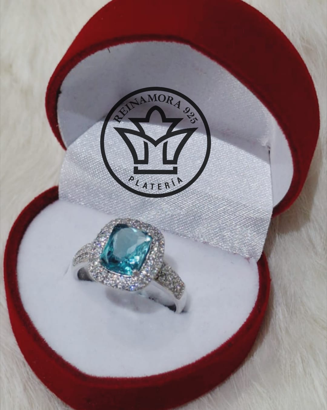 Anillo Plata 925 Rodinado Cz Celeste Cuadrada Ethel 4grs