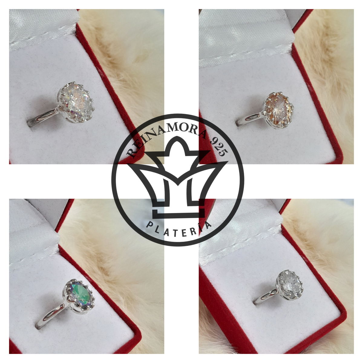 Anillo Plata 925 Cz Corona Aurora Boreal Blanco