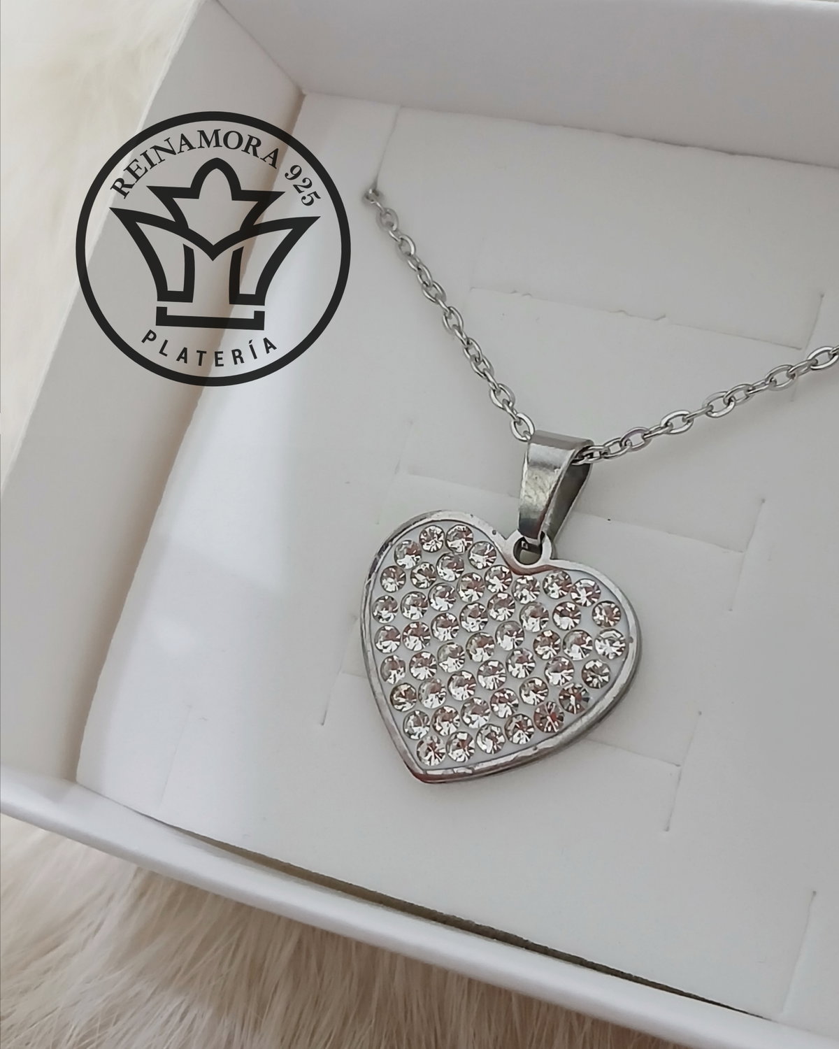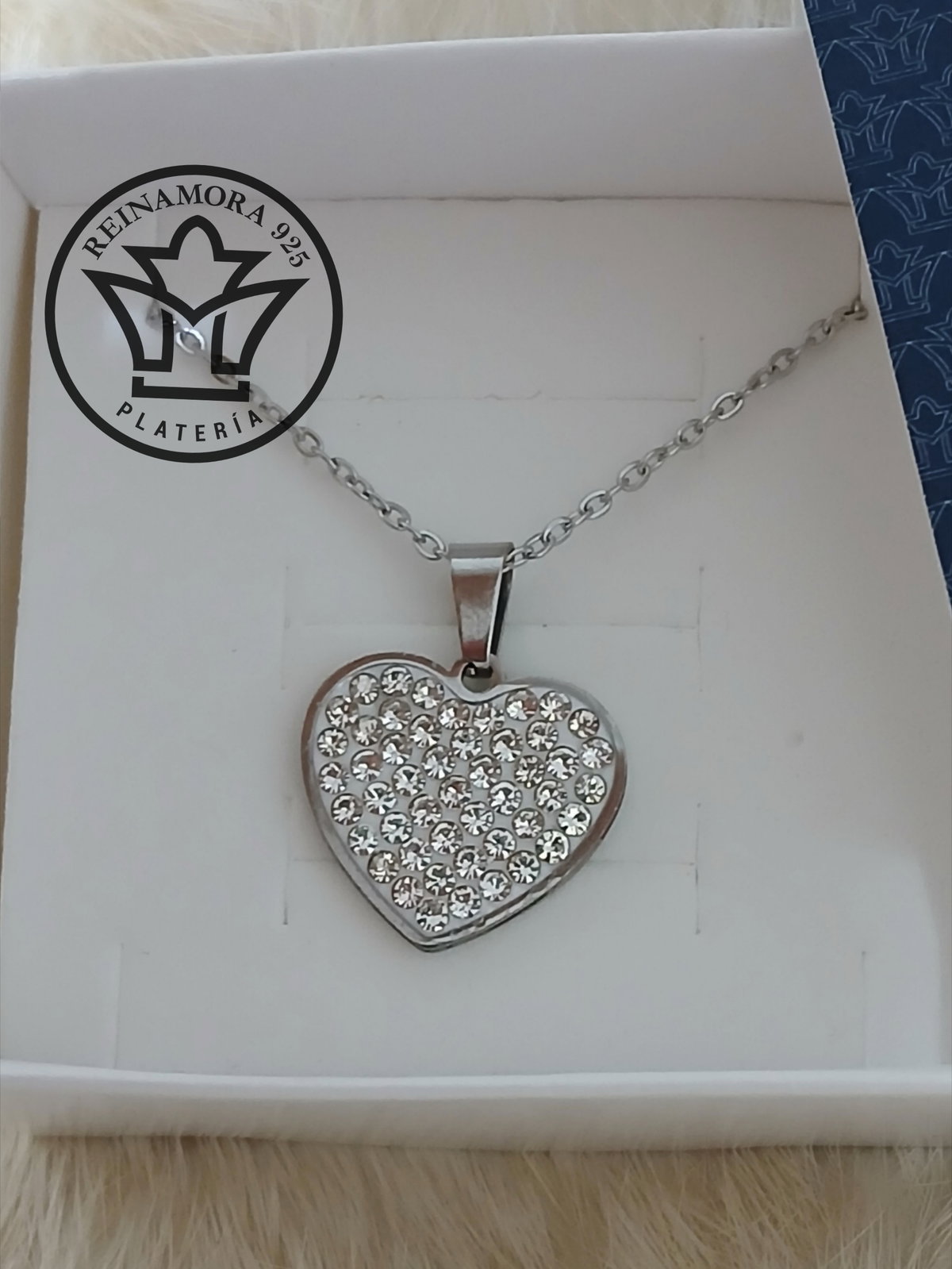 Cadena & Dije Corazón Multistrass Acero Quirúrgico