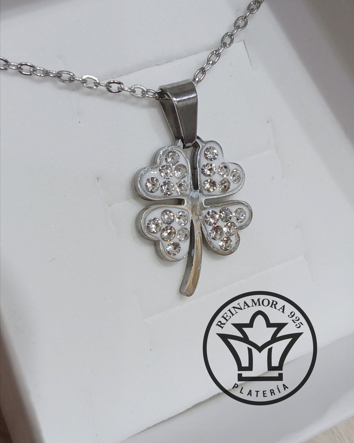 Cadena & Dije Trébol Multistrass Acero Quirúrgico