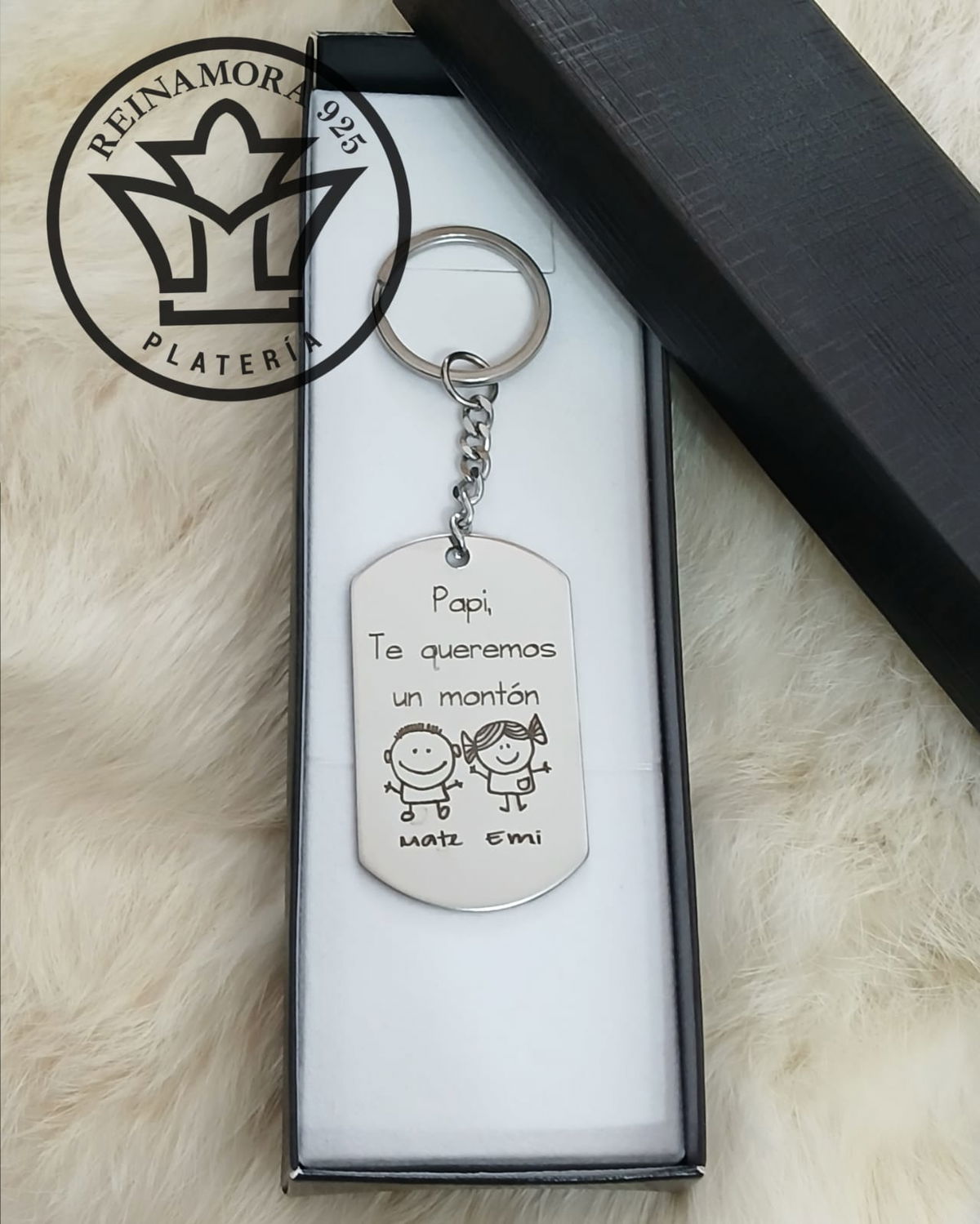 La medalla mide 50x30mm. El grabado es en ambos lados. Puede grabar datos personales, logos y frases.