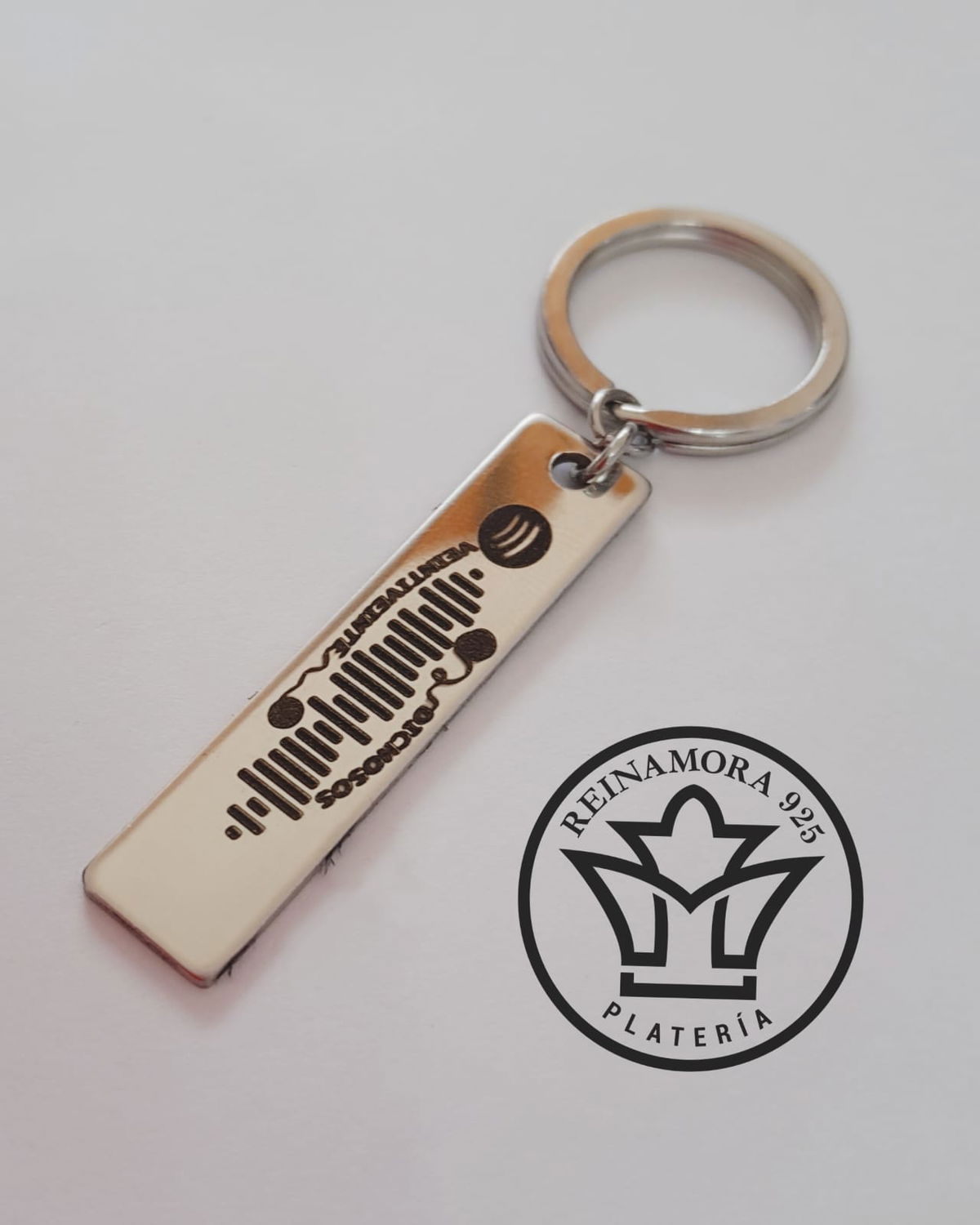 El dije mide 40x10mm. El precio Incluye el grabado frente spotify y atras una frase corta.