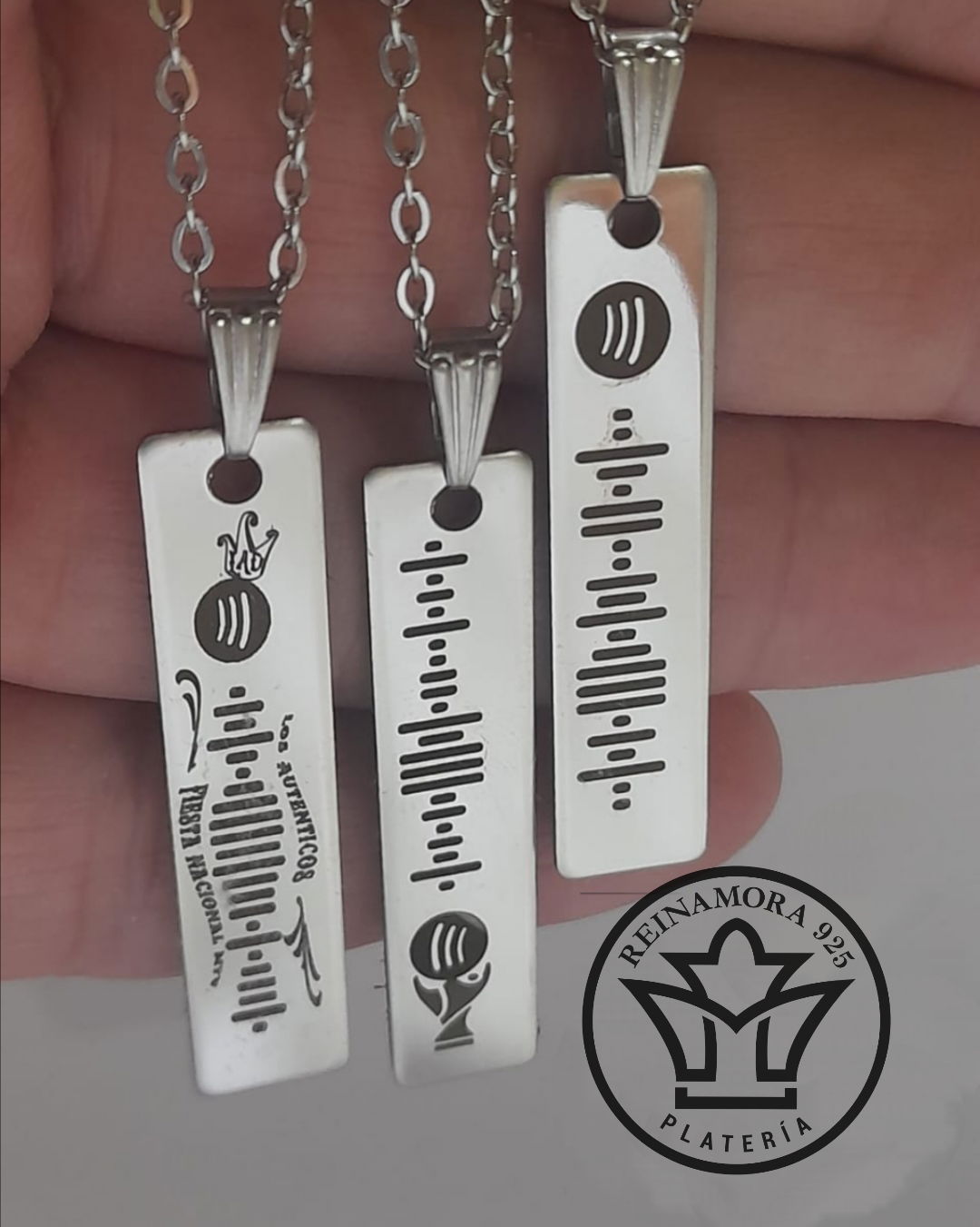 Dije Acero Quirúrgico + Cadena + Grabado Spotify