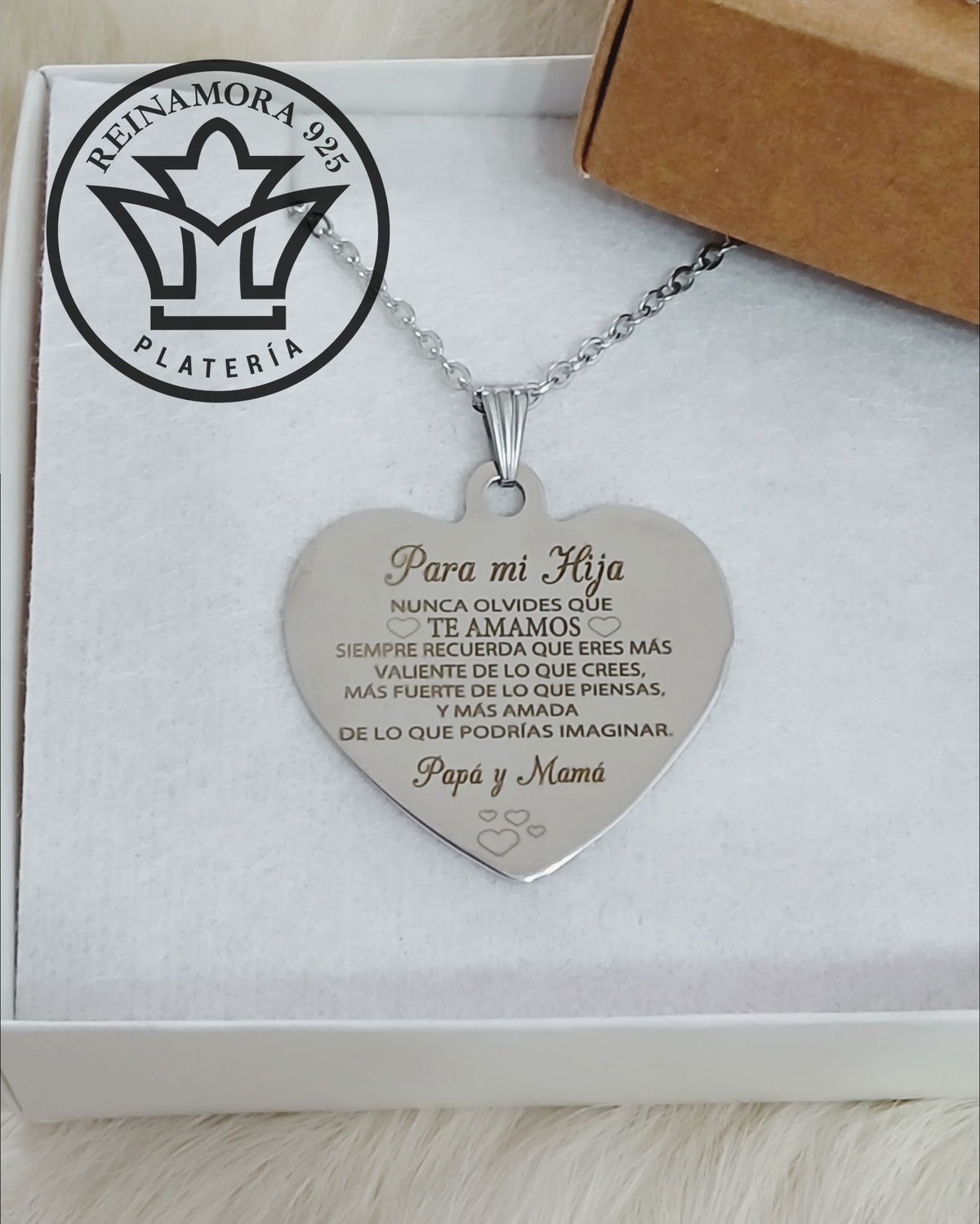 Dije Acero Quirurgico Corazon 33x25mm + Cadena +Grabado Frase