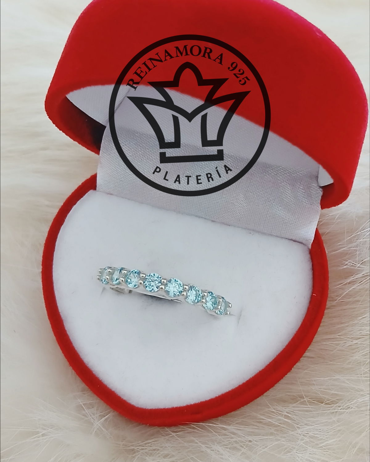 Anillo Plata 925 Cz Cintillo 8p 3mm 2.5gr (Agua Marina)