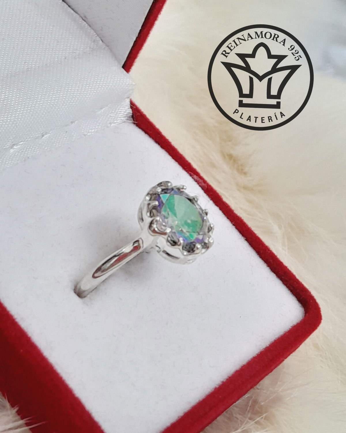 Anillo Plata 925 Cz Corona Aurora Boreal Violeta