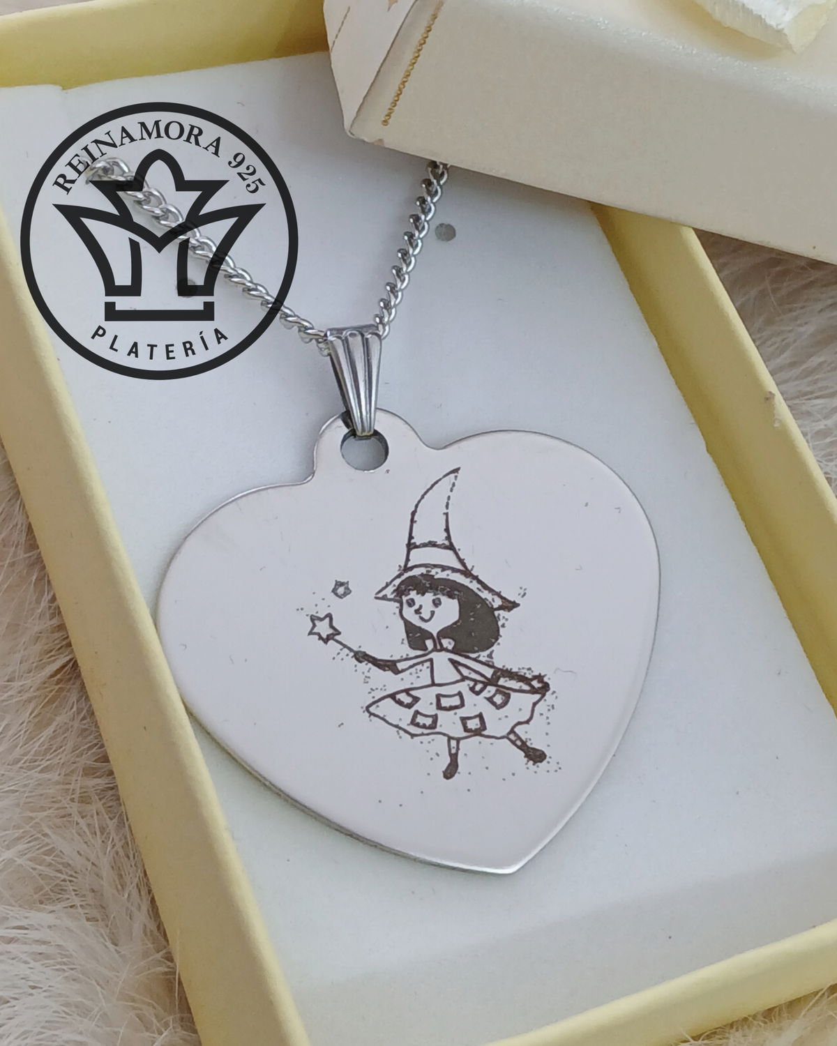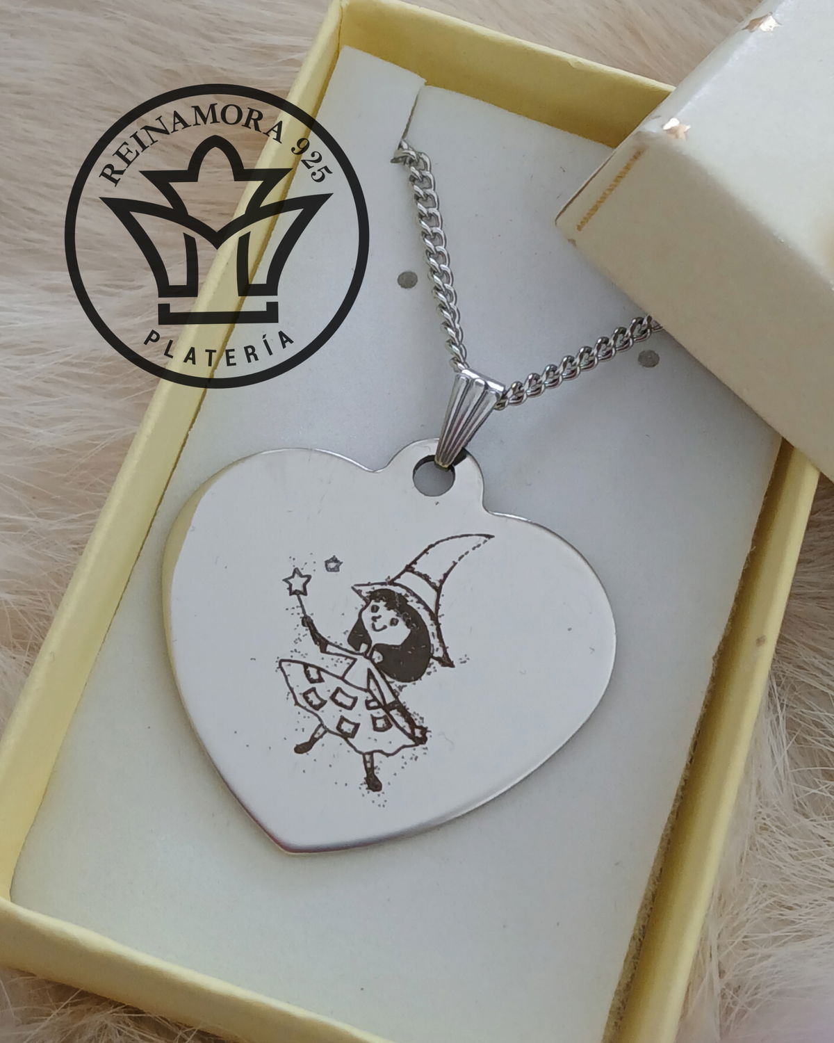 Dije Acero Quirúrgico Corazón 35x33mm + Cadena +Grabado Logo