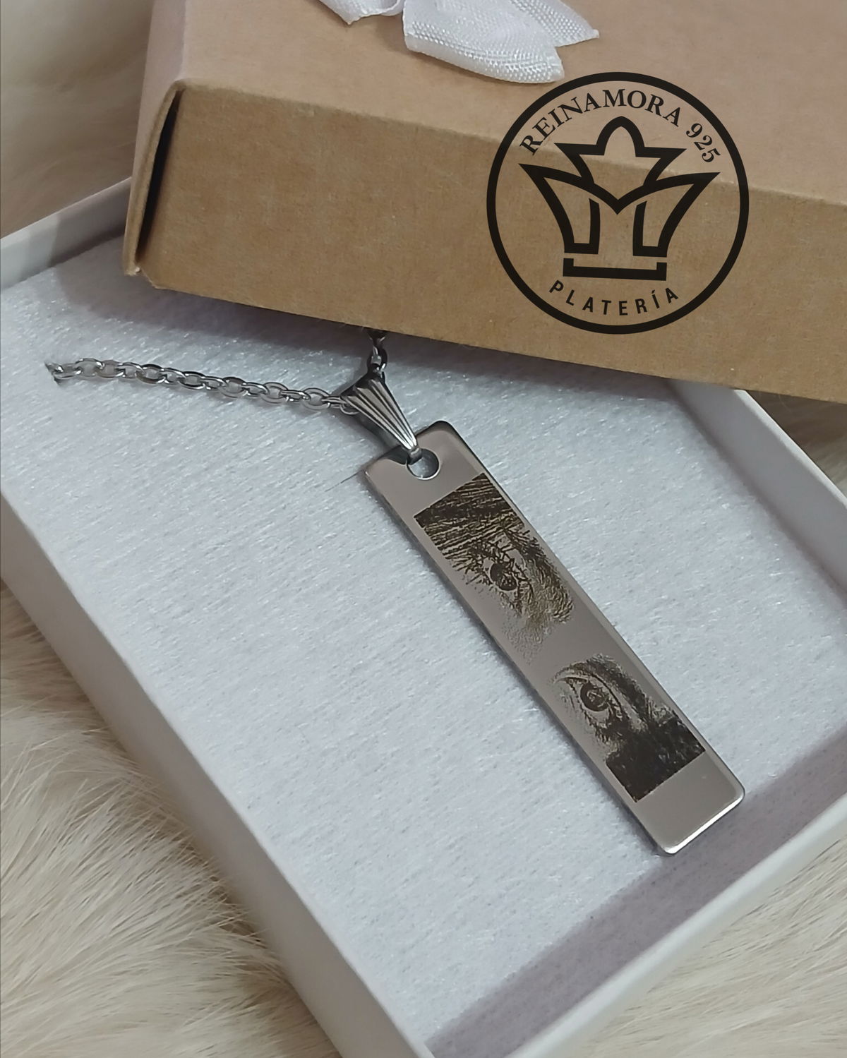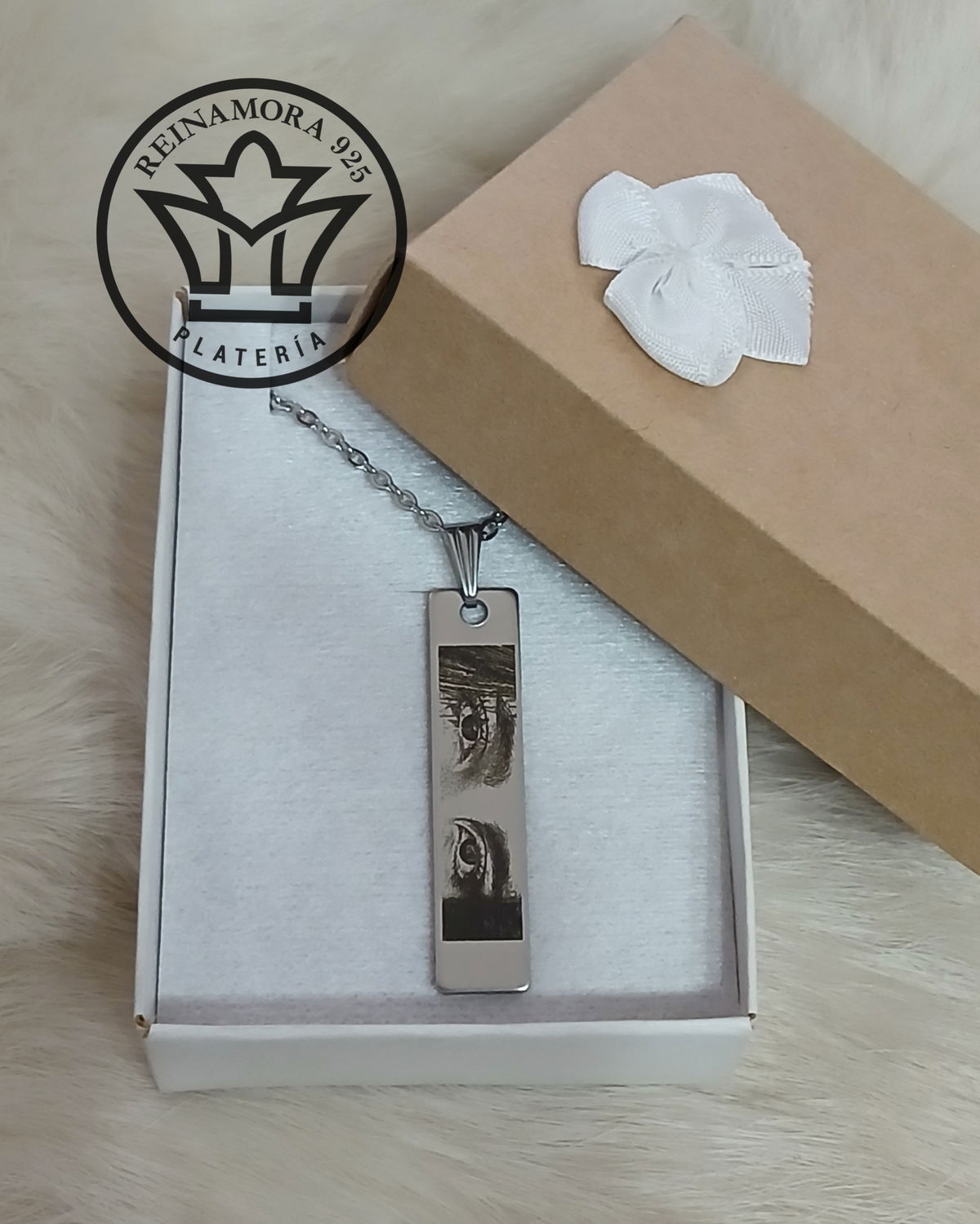 Medalla 40x10mm con grabado frente y frase atrás corta sin costo, cadenita de 45cms o accesorio de acero para llavero.