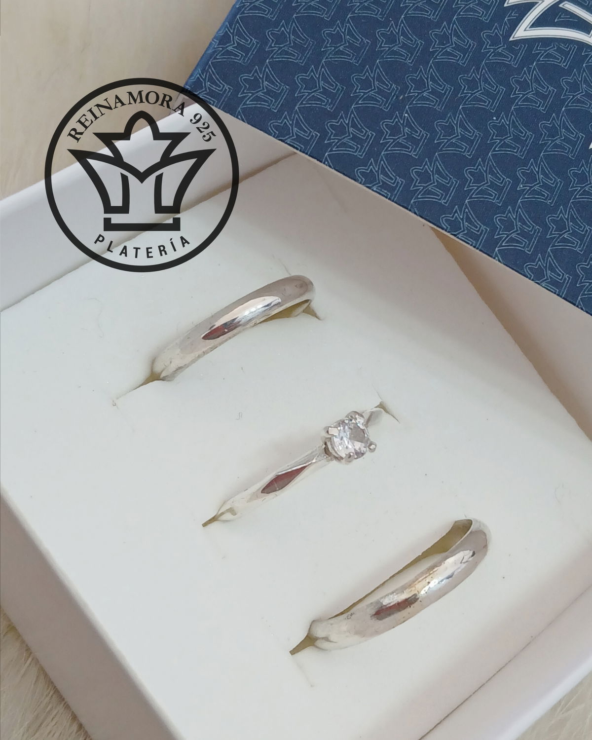 Alianzas Plata 925 Media Caña 3mm con Solitario Cz Facetado 4mm