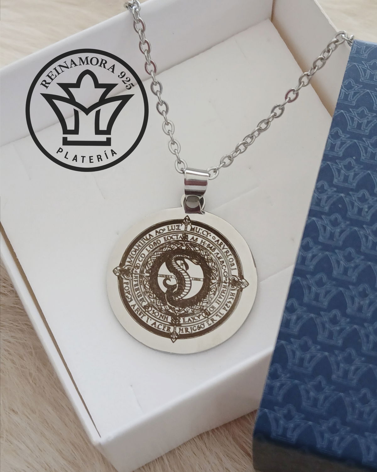 Dije Acero Quirúrgico Redonda 25mm + Cadena +Grabado Logo